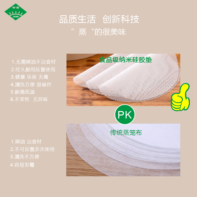 食品级纳米硅胶垫具有耐高温耐低温,不开裂,防腐蚀性,安全,柔软,弹性好,耐扭结而不变形,是一种新型环保材料,通过食品卫生部门检查,有相关安检证书,放心使用。表面涂层采用进口食品级硅胶(耐高低温-40度—230度),基材使用的是高品质涤纶纤维布。